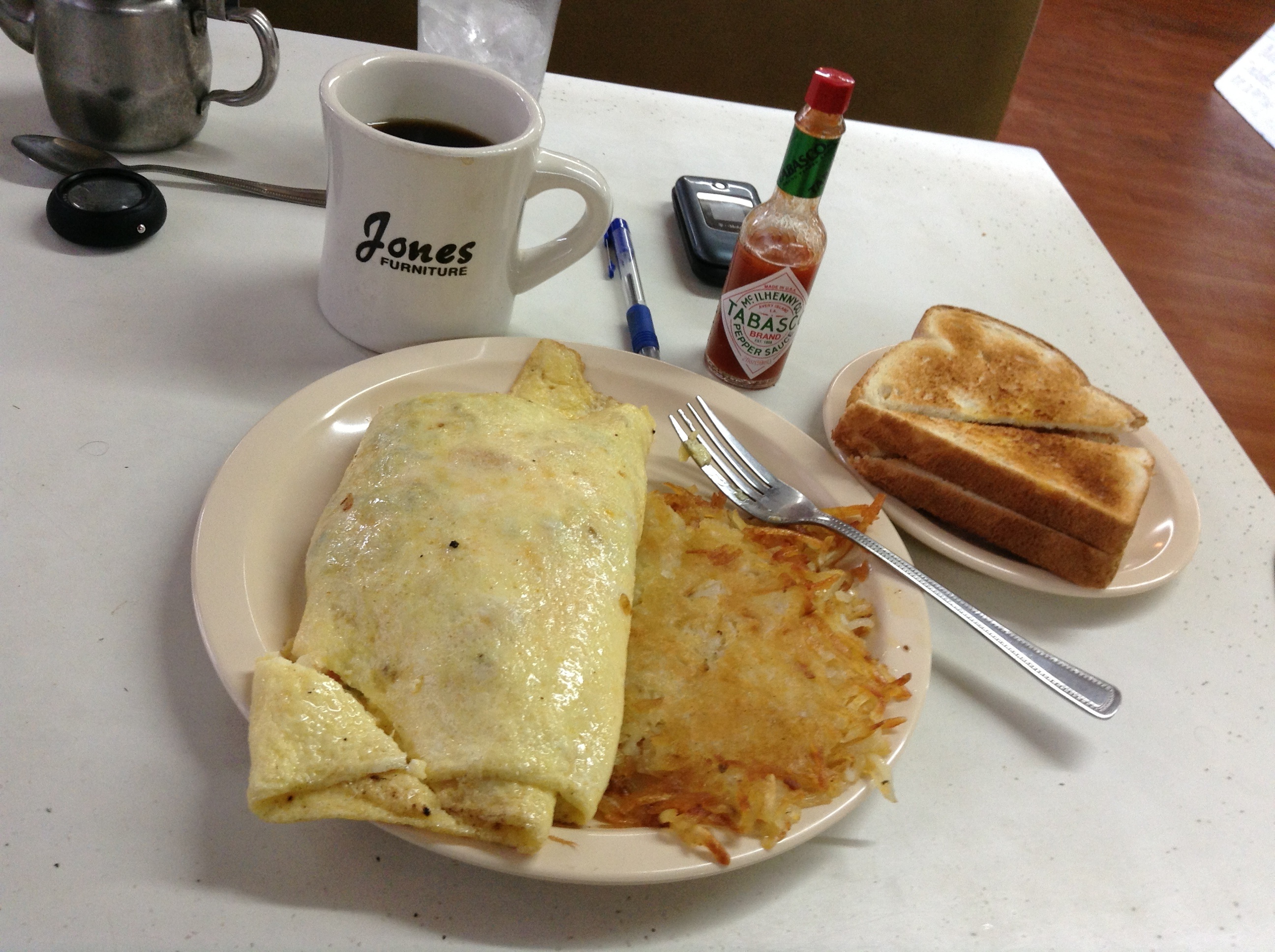 I got up around 6:30 and broke camp. Once the bike was packed I rolled down the street about a block and stopped at May’s Restaurant for some breakfast.