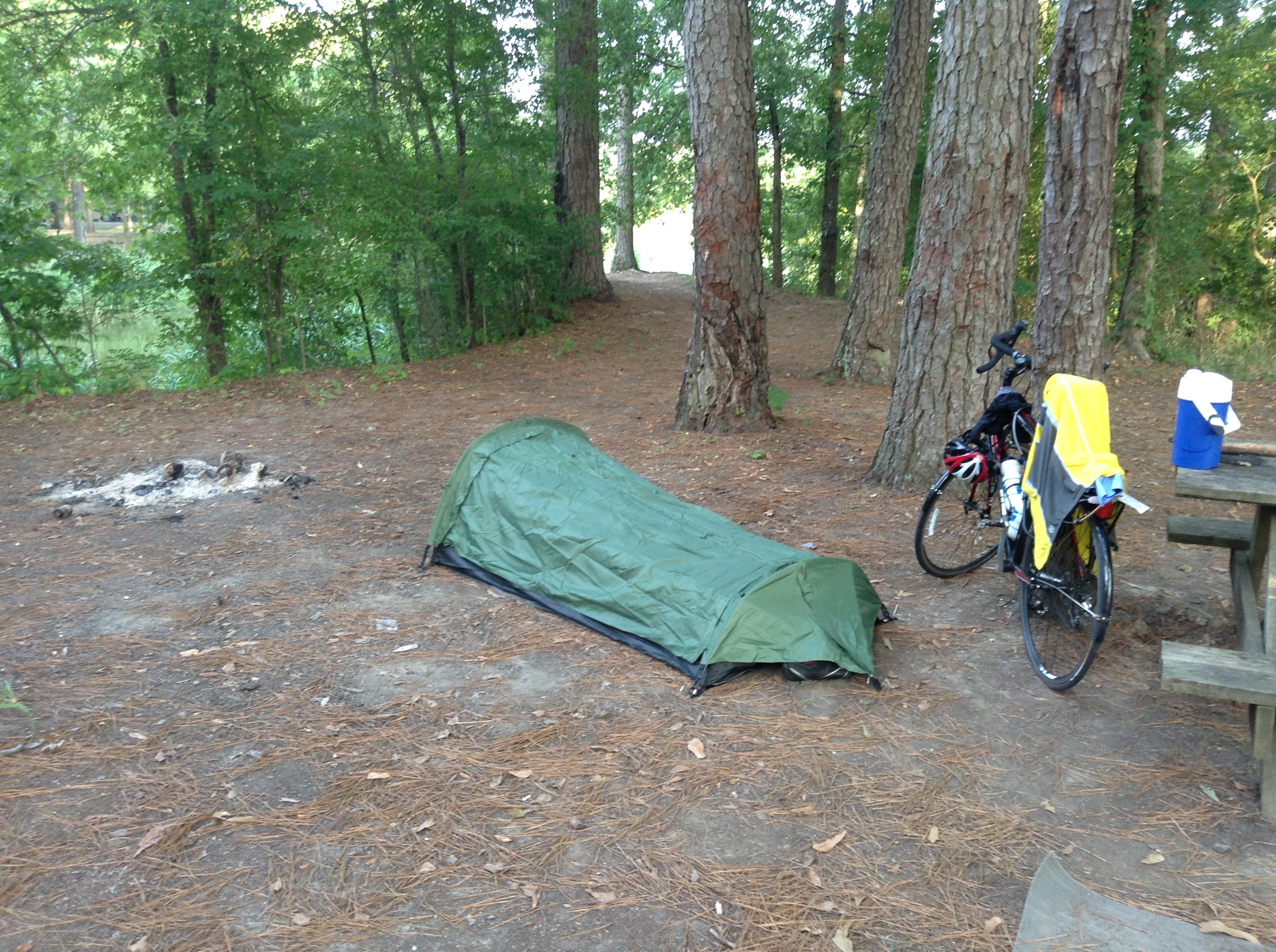 I made it to the camp around 6. Just in time to get a shower, set up camp and get some dinner at the weekend only bar at the Ratliff Ferry Trading post.
